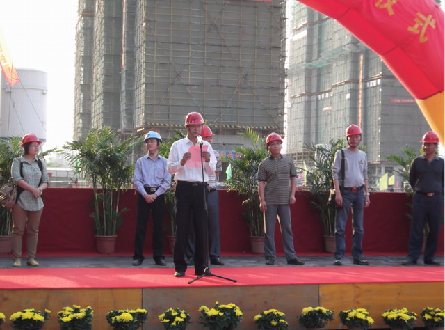 十月金秋,秋高氣爽,工地鮮花錦簇,鼓樂齊鳴,10月10日下午4時18分,我公司濱江和園保障房項目部舉行了隆重熱烈的18層住宅樓封頂儀式。 該工程由6棟18層、5棟28層住宅樓及地庫組成,共17.5萬平方米,分三批次開工,是浦口區最大的保障房工程。6棟18層住宅樓作為首批開工項目,自今年3月份開工以來,項目部全體管理人員,克服困難,比總進度計劃提前11天完成封頂。 浦口區房產局副局長劉飛,浦口區保障房建設發展有限公司總經理薛松,南京堃正工程項目管理有限公司總經理左文清及我公司副書記張正山等同志出席了典禮儀式。儀式由代建方江蘇亞東建設發展集團有限公司浦口分公司總經理胡洪軍主持。 在致辭中,胡洪軍對我項目部前期的工作給予充分的肯定,對提前封頂取得階段性成果表示祝賀,并希望我項目部在下階段工程中,發揚成績,取得巨大勝利。 左文清同志代表監理公司發言,他對項目部的前期工作表示滿意,并表示在今后工作中,繼續為實現保障房工程達到優質高速的目標提供服務。 張正山同志代表我公司,向浦口區有關主管部門、代建方及監理單位對工程給予的關心和支持表示感謝,并表示在今后將繼續努力,兢兢業業,建造讓人民放心滿意的保障房工程,為浦口區民生工程做出更大貢獻。 在喜慶的樂曲聲中,封頂儀式圓滿結束!