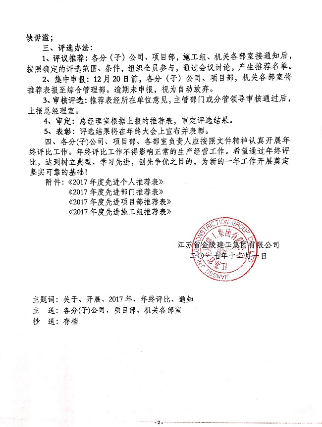 關于開展2017年度年終評比工作的通知