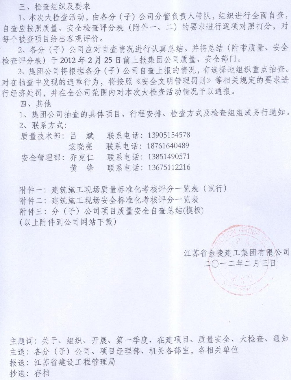 開展第一季度質(zhì)量安全大檢查的通知