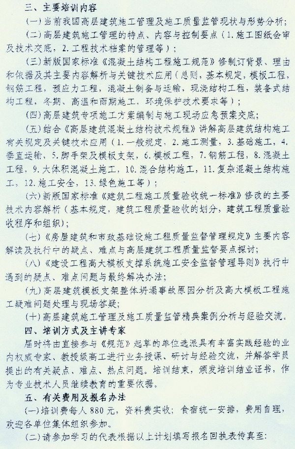 關于繼續舉辦“2011年全國高層建筑施工關鍵技術應用及施工質量監督管理業務知識培訓班”的通知